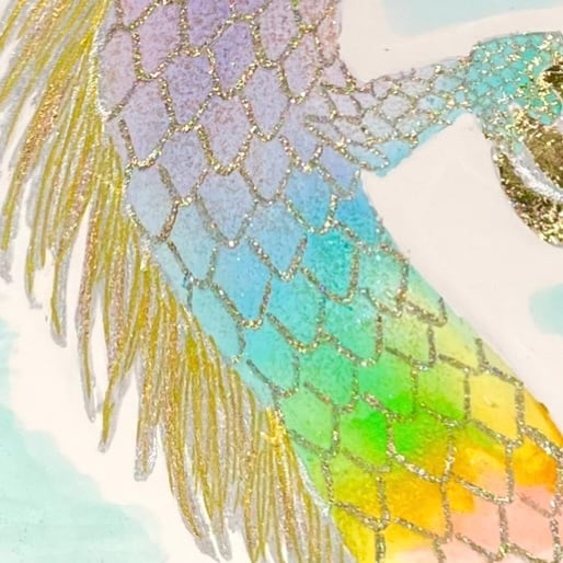 こちらのアートは美しい空をバックに虹色の龍が登っていく昇龍アートで、光輝くアルコールインクアートの作品になります。