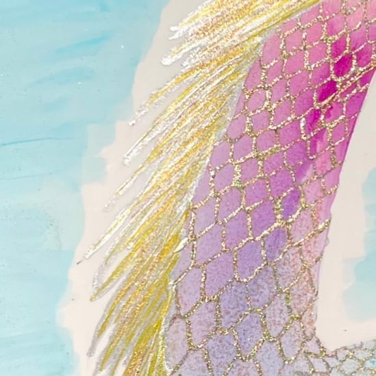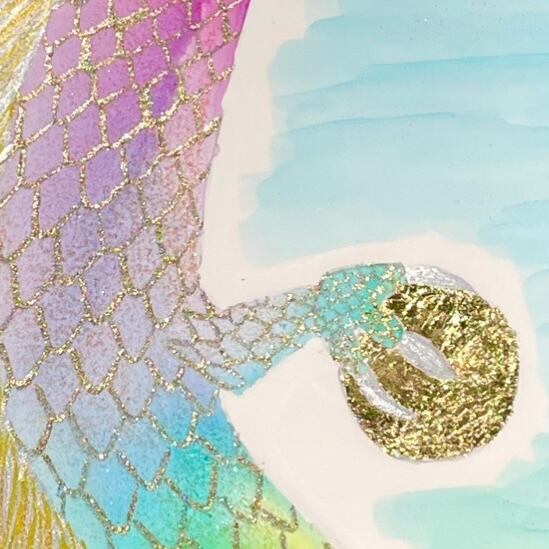 また、原画は光に当たるとキラキラと輝きます。印刷などではこのような輝きを表現すことはできません。ぜひこの輝きをご自分で手にとって体感してみてください。