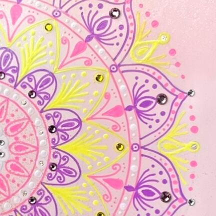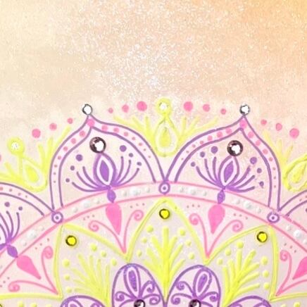 こちらの曼荼羅は背景をアルコールインクアートで描きその上に曼荼羅を描いています。